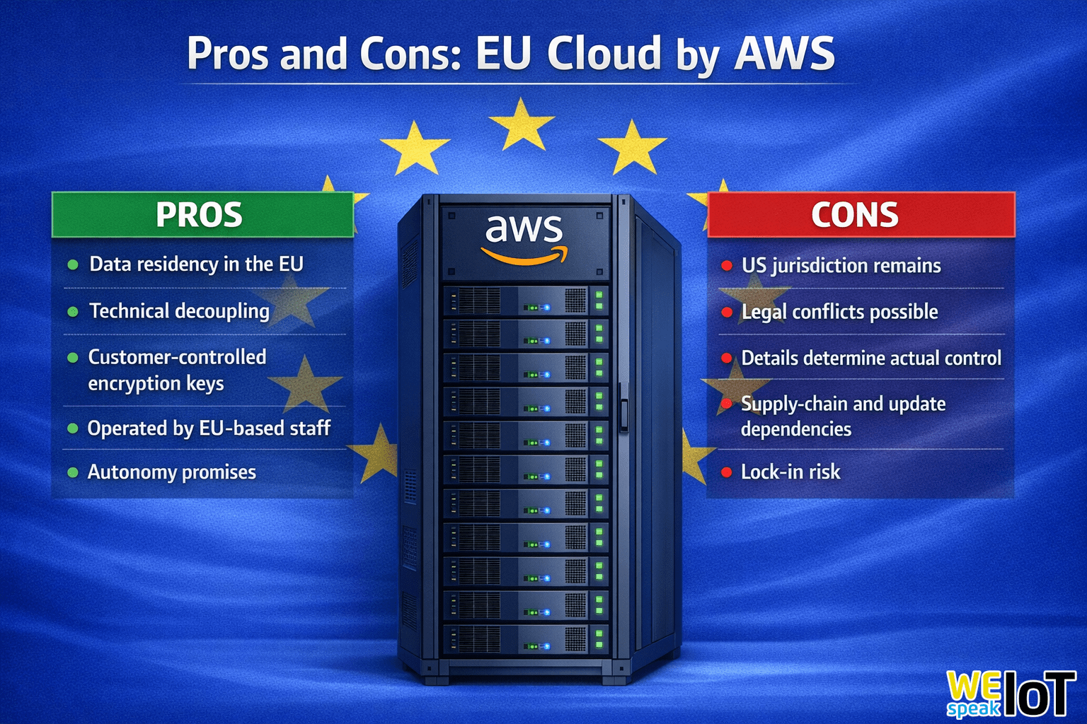 In the debate on digital sovereignty, these commitments are indeed seen by some as progress. Supporters view the planned cloud as a way to reduce risks such as uncontrolled data outflows or operational dependencies on non-European infrastructures. At the same time, fundamental criticisms remain. Skeptics point out that AWS remains a US company and is therefore fundamentally subject to US law. Even if data is stored in Europe, corporate structures, software dependencies, or legal obligations in the United States could still exert influence. Added to this is concern about economic dependency and long-term lock-in to proprietary cloud services, which makes switching to European providers more difficult.